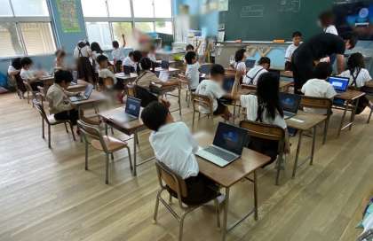一人一台のタブレット端末の入り方を学びました。ICTアシスタントの方にサポートしてもらいながら、入力を進めていきました。