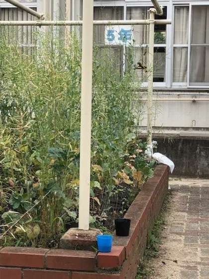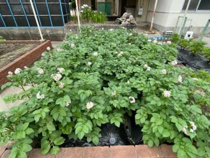 小さくてわかりにくいですが、カワラヒワという鳥がきていました。したは、ジャガイモの花です。