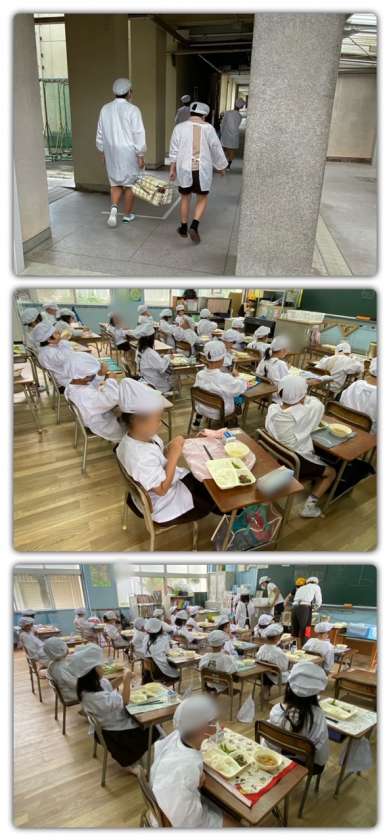 中学年以上の当番は、分量を考えて手早く配膳ができています。