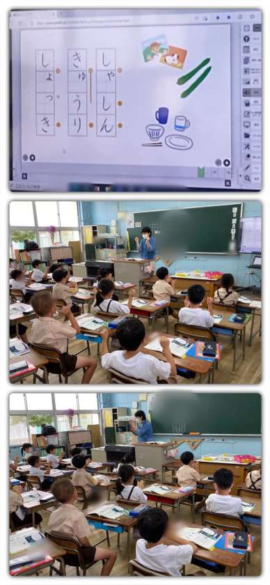小さい「ゃ、ゅ、ょ」や「っ」の文字の読み方や書き方(拗音や促音)を学びました、読む時に手を使って表して覚えていきました。