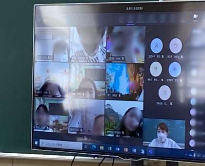 校内の中で、Wi-Fiのつながりやすいところを見つけ、教室と校内のいろんな場所へ行って、双方向通信の使い方はわかっているので、カメラで合図を送って通信を行いました