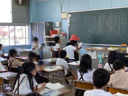 場面の内容をイメージしやすいように、動きで表して、内容を深めています。