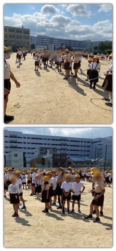 玉を投げて、相手の持つフープや紙コップへ入れていくゲームです。