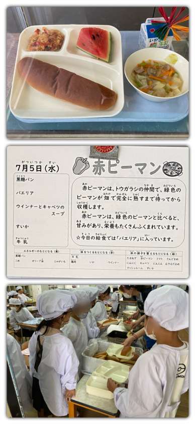 今日のきゅうしょくに、パエリアがありました。具沢山でとても食べ応えがありました。