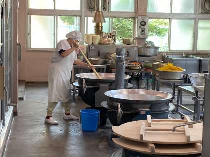 調理員さんたちは、給食を喜んで食べる子どもたちをイメージして、心を込めて、調理してくださいました。