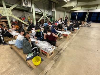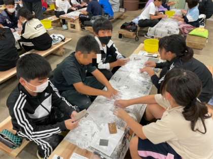 まが玉つくりがスタートしました。説明を聞く姿勢も真剣です。