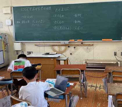 図画工作で、「にじんで広がる色の世界」をイメージしながら描きました。