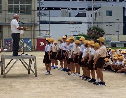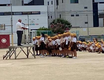 夏休み中の水泳記録会に参加した児童の記録の表彰と、ソフトボールチームの子どもたちが鶴見区の大会で準優勝した表彰を行いました。