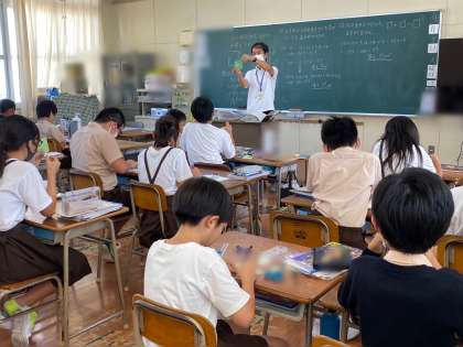 直線が同じ長さの扇形を2つ重ねた図形の重なっている部分の図形を求める時の方法を、色紙を切って視覚化して、考えていきました。