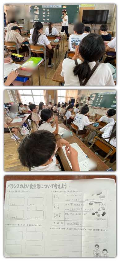 栄養教諭に来ていただいて、6年生に「栄養バランスの良い食生活について考えよう」ということをテーマに、指導していただきました。