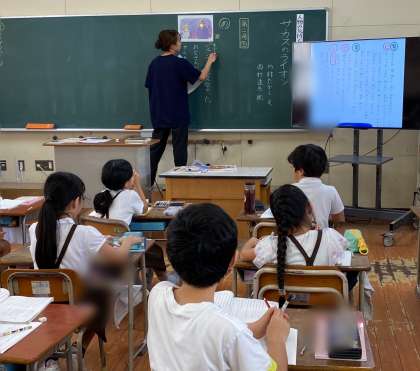 国語の学習で、「サーカスのライオン」の物語で、夜の散歩をしているジンザの場面から、ジンザの気持ちについて考える学習をしています。