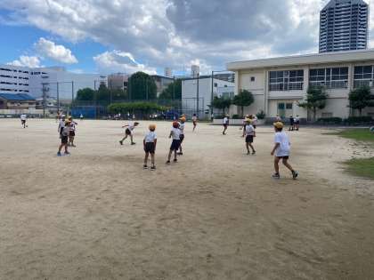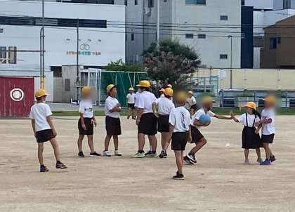 最近は暑いだけでなく、急な大雨が降ることもあったので、昼休みに外で遊ぶことがなかなかできない日が続いていました。外に出られると分かり、みんなウキウキとして外に出てきて、のびのびと遊んでいました。