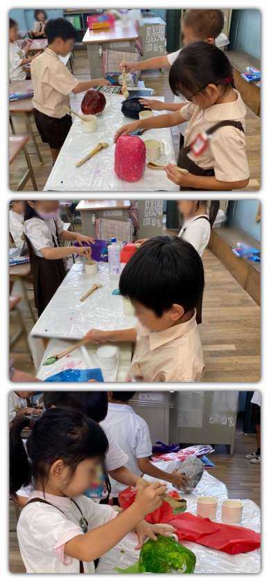 図画工作で、ダルマ作りをしています。