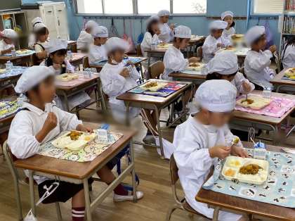 カレーの中には、ラッキーニンジンが入っています。くまや、ハート、星などの形にカットされたニンジンがたまに入っています。「入っていたら、ラッキー!」と、喜んで食べていました。