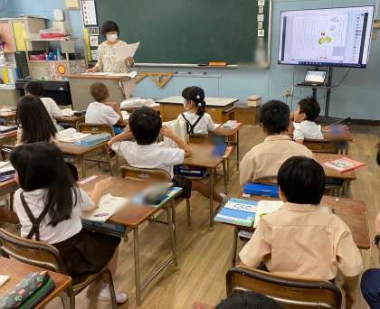 それぞれが作って書いた言葉を先生にみんなの前で紹介してもらい、自分の作った言葉が出てきた時は、大喜びをし、みんな夢中になって聞いていました。