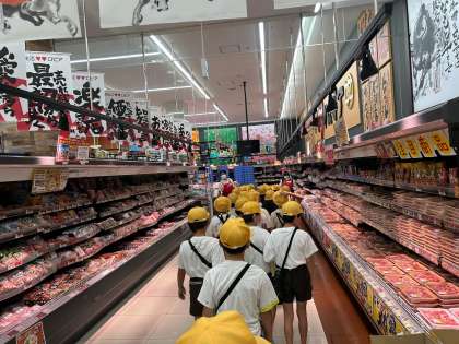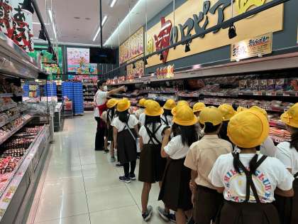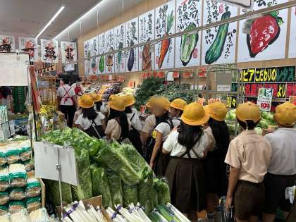 スーパーマーケットの中の工夫などをお店の方に説明してもらいながら、見学しました。