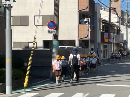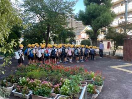 今日は、1年生の校外学習です。快晴のなか、みんな元気に出発しました。安全に思いっきり楽しんできてください。