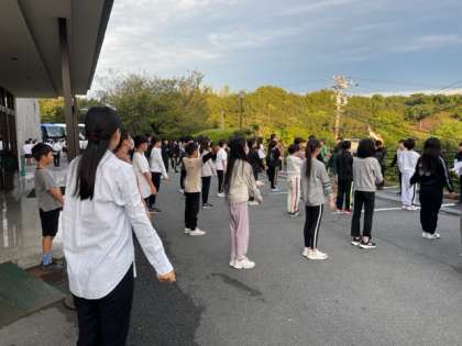 朝の集いからラジオ体操を行いました。体調不良の児童もなく、みんな元気に集合しました。
