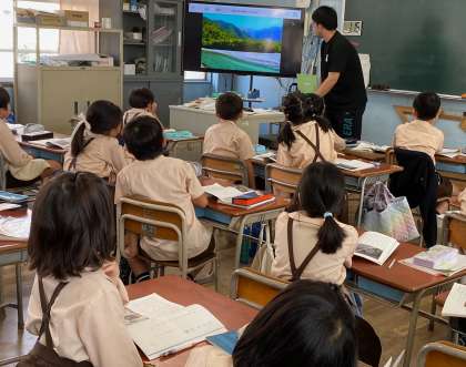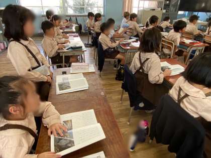 「ビーバーの大工事」の学習をしています。難しい言葉を見つけて、みんなで考え説明をしあっています。