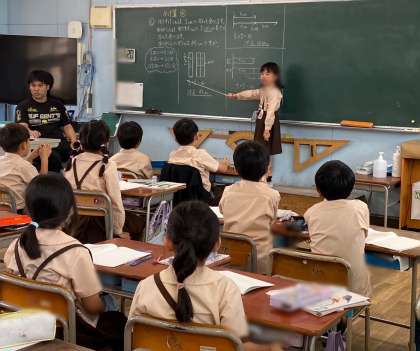 どうすれば、問題の答えを見つけられるのか、考えたことを友達にわかるように説明しています。