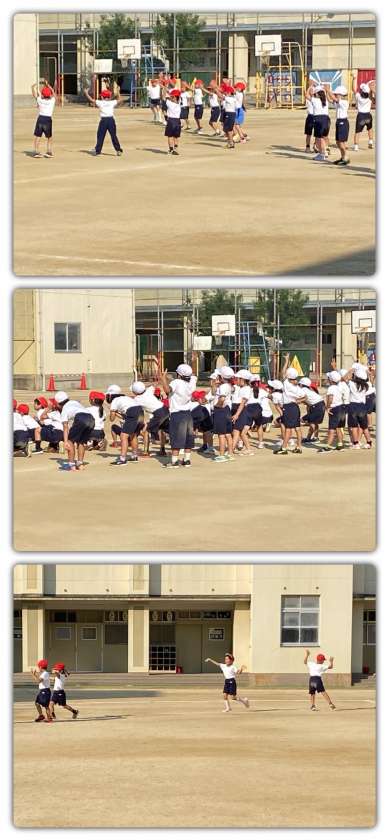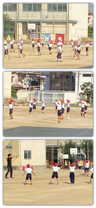 1年生のリズム遊びは、退場のときはみんなに手を振りながら退場します。退場してからもリズムに乗って踊り続けています。