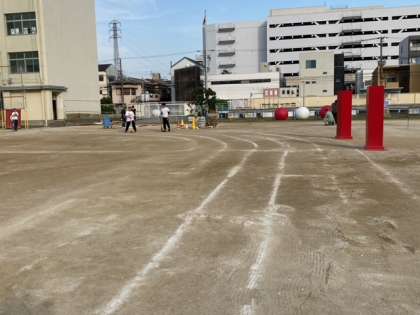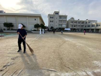 子どもたちが下校した後、教職員で運動会の最終準備をしました。