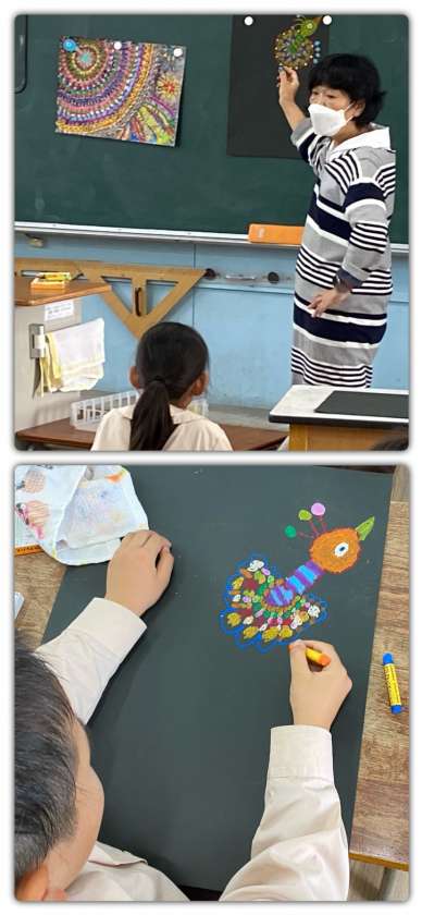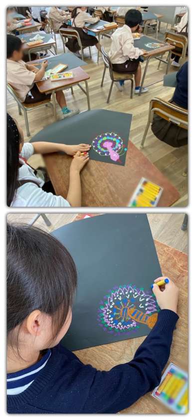 ずがこうさくでは、パスで小さく模様を繰り返しかいて、描いています。