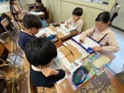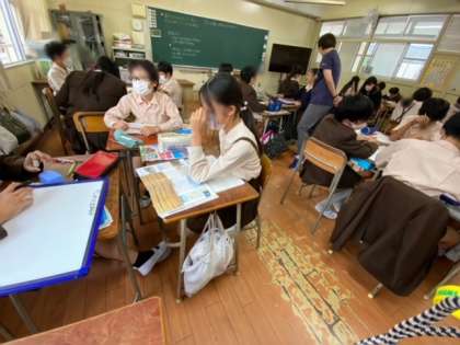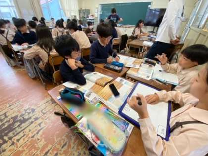 「参勤交代」をなぜ行なっているのかについて、グループで話し合っています。
