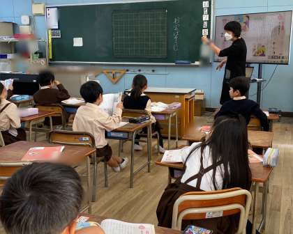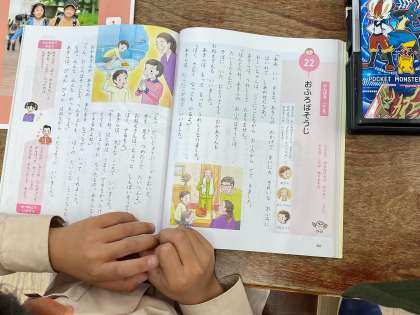 道徳では、「おふろばそうじ」の教材をよんで、がんばることについて、考えました。