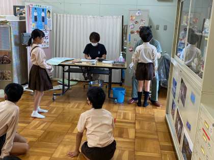 学校歯科医の先生に来ていただいて、全学年の児童が、歯科検診を受けました。