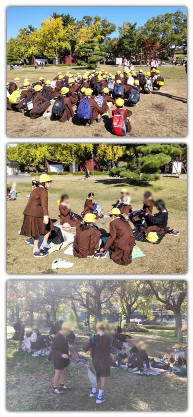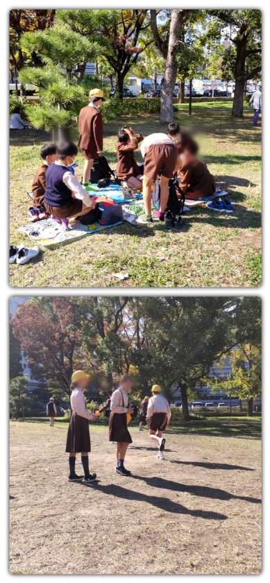 見学をした後、近くの広場でお弁当をいただきました。食べ終わった後、少し体を動かし、予定通り元気に学校に戻りました。