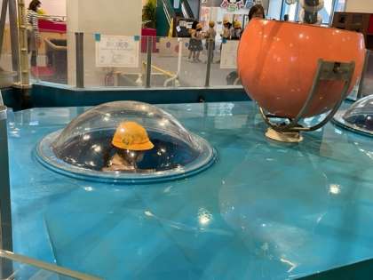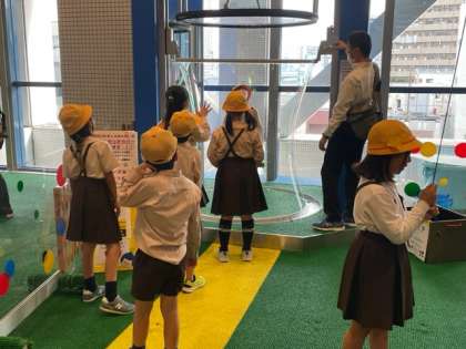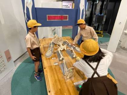 人体の骨の学習をしています。大きなシャボン玉の中に入っています。