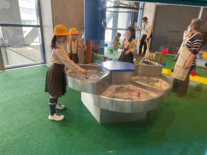 最初は、貸切状態でしたが、沢山の学校が来ています。みんな譲り合って楽しんでいます。館内は、大変賑やかです。