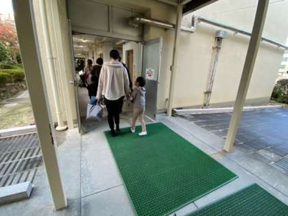 初めてくる学校にわくわくして、学校のいろいろな部屋や物に興味を示している様子が伝わってきました。