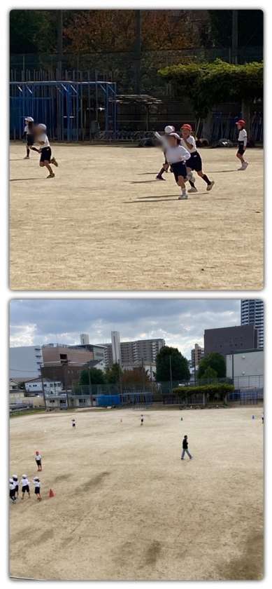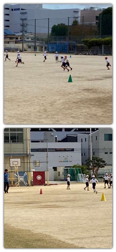 体育では、鬼ごっこをしました。鬼と逃げる人のルールを守って行いました。