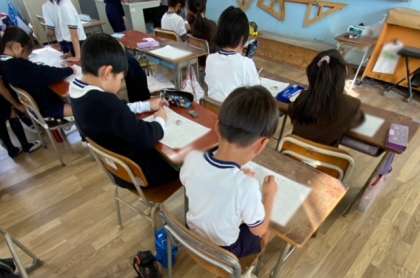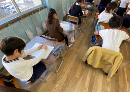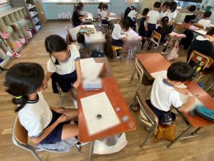 午前中に行った、オリエンテーリングの感想を原稿用紙に書きました。