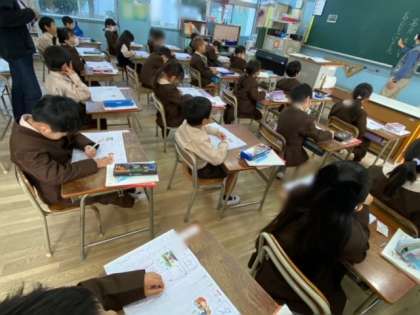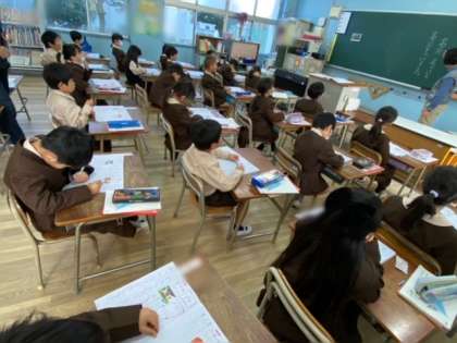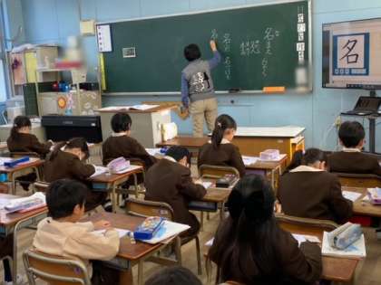 国語では、漢字「名」を学習しました。「名」のつく言葉や文を考えてから、ノートに練習しました。