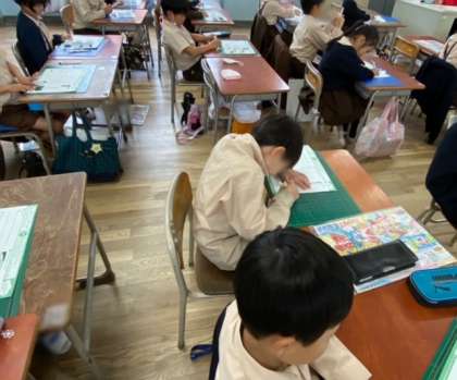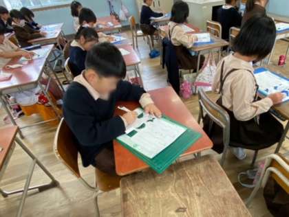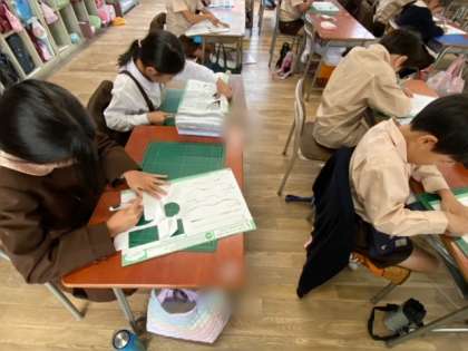 図画工作では、カッターナイフの使い方を学び、カッターナイフで切る練習をしました。