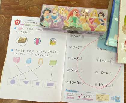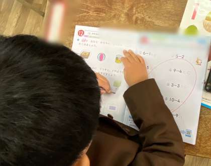 箱などを使って学んだ後、それぞれのペースでドリルに取り組んでいます。