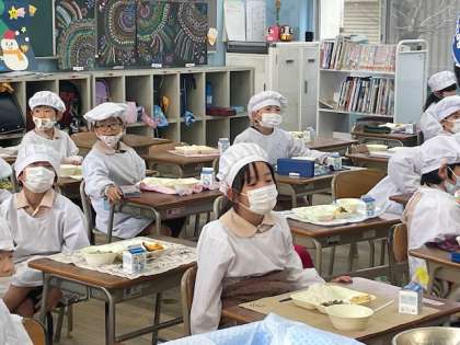 今日の千草焼きは、卵の中に具材として鶏肉、豆腐、コーン、みつばを細かくきざんでまぜあわせて焼いた料理です。