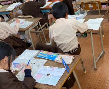 図画工作で、くぎうちゲーム作りの続きをしています。