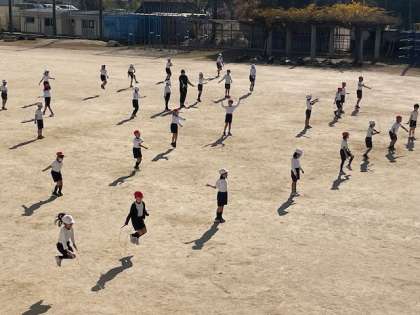 2年生が縄跳びをしていました。なかなか上手な児童もいます。