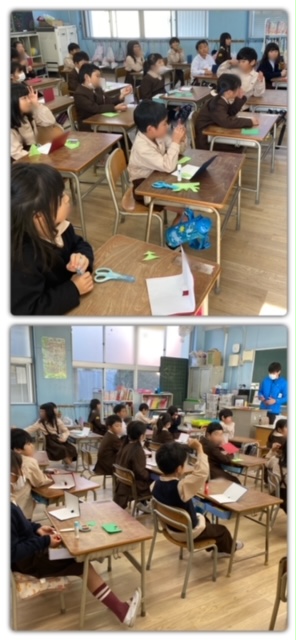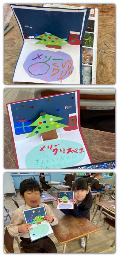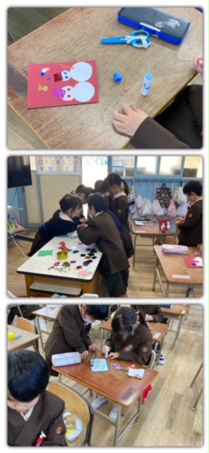 友達と教え合いながら前回の続きでクリスマスカードを作っていきました。