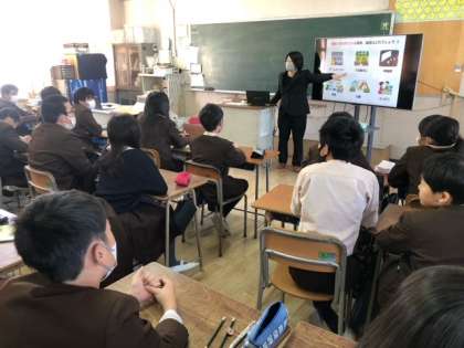 2時間目と3時間目、6年生が、租税教室で、「税金」をテーマとした出前授業を受けました。税金がある時とないときで生活がどんなに変わるかを、映像で見た後、クイズ形式で考えました。