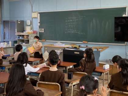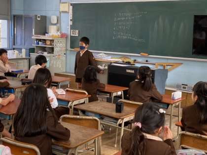 冬休みの出来事など、サイコロを振って出た目の数に当てはまる項目について、発表し、友達からの質問にも答えていました。