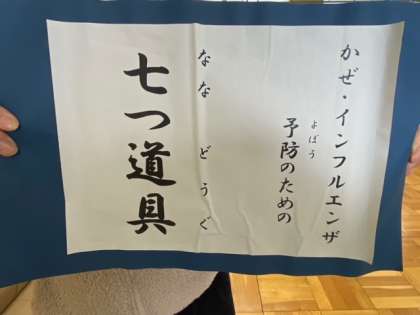 測定の前に、教室で保健の先生から、風邪、インフルエンザ予防の「七つの道具」について、話を聞きました。