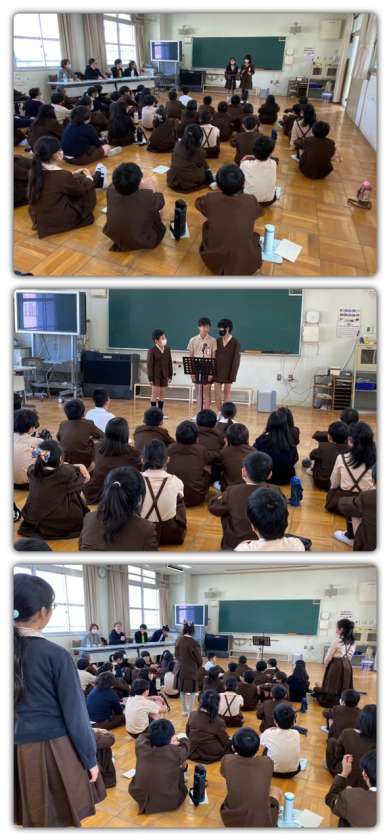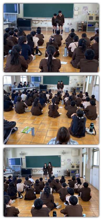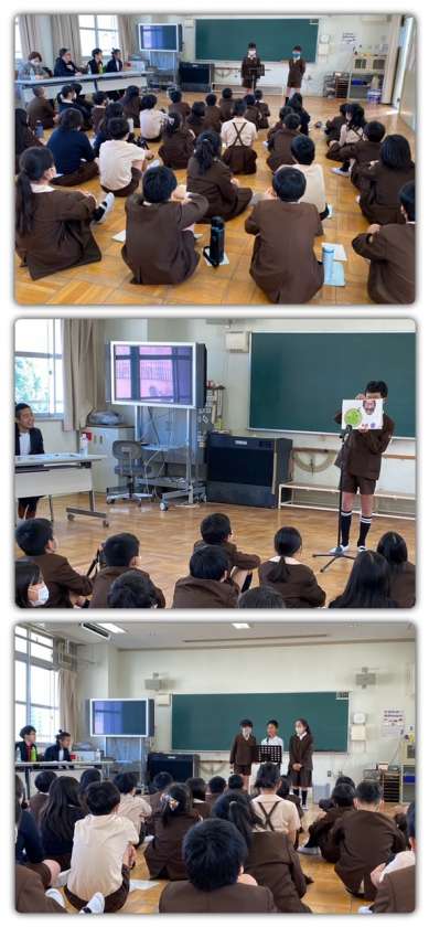 アドバイスをいただいて、話し方や間を工夫して、漫才の練習をして、発表しました。