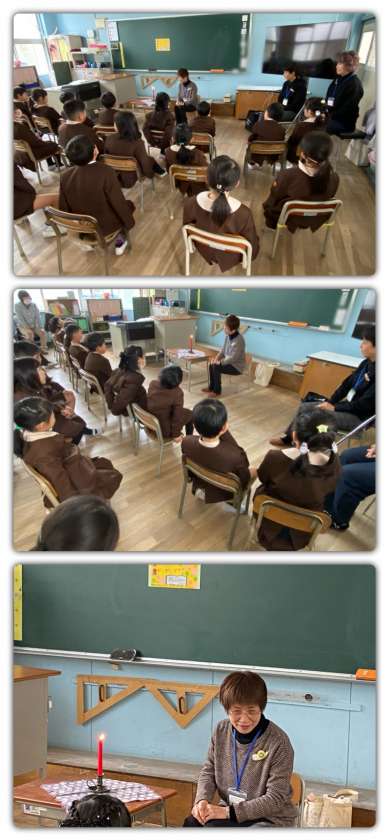 お話が全て終わった時に、「ろうそくの火を消すタイミングでお願い事をしたらいいですよ」と言われて、それぞれの思いをそーっとお願いをしていました。