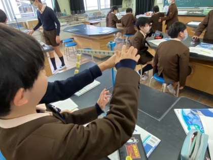 理科では、てこを使ってものを持ち上げるとき、どのような決まりがあるかについて調べました。
