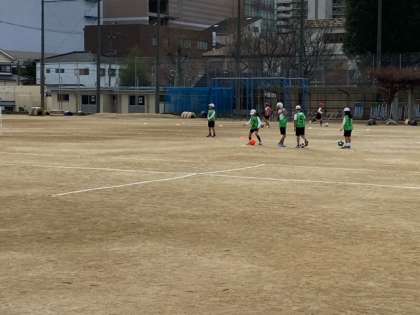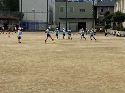 体育では、サッカーゲームに向けて、数名ずつに分かれて、ボールを蹴る練習をしました。